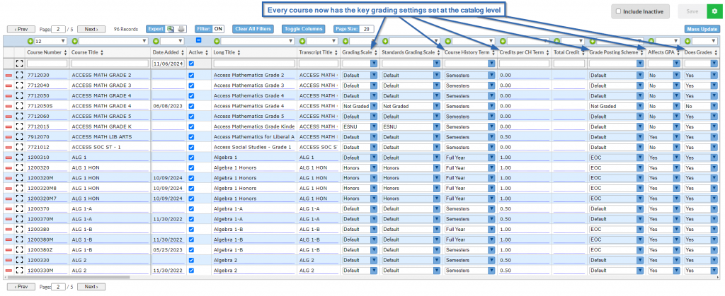 Maintenance of the Course Catalog is easy for SDS districts as well. Every year we add, remove and update the CCD changes to the FOCUS Course Catalog for our districts. MIS staff simply “activate” any new courses they want to use and manually assign the grade posting settings specific to their district.